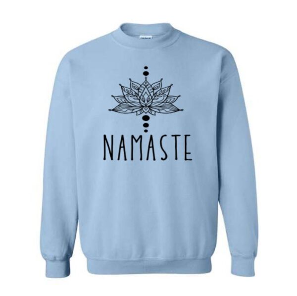 Crewneck de couleur bleu léger avec impression NAMASTE – Taille médium